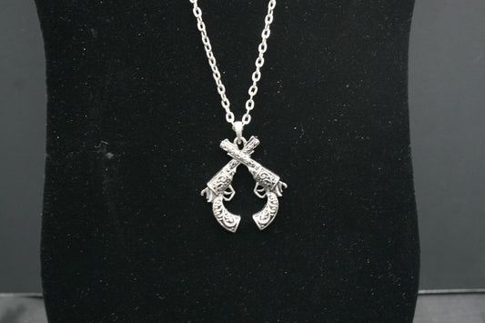 Crossed Pistol Necklace and Earring Set