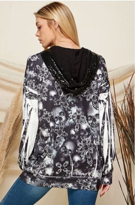 Blumin Full Zip Printed Jacket with Sequins Contrast Hoodie