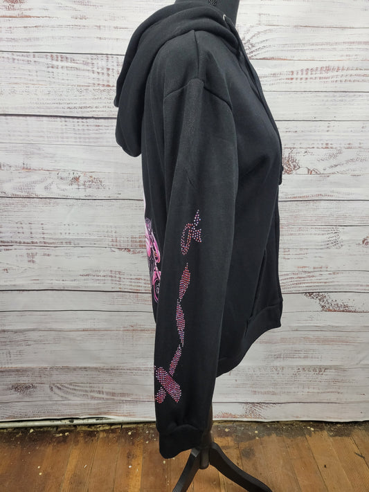 Outlaw Faith Wear Motorcycle with Cancer Ribbon Black Hoodie