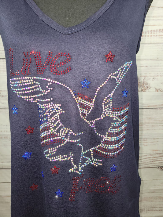 Live Free Rhinestone Tank Top With Laser Cut Flag Back