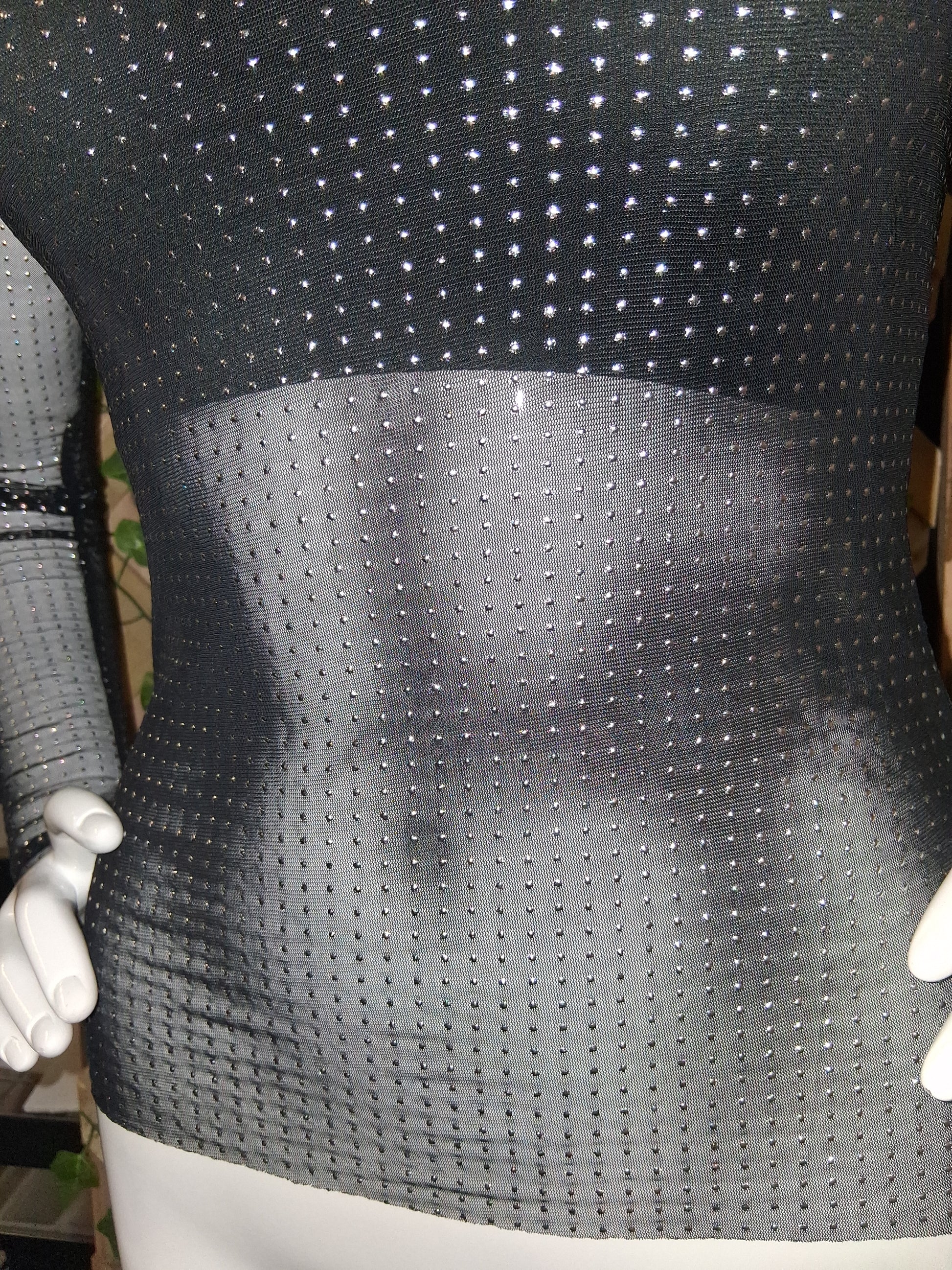 Elevate your style with the Fitted Rhinestone Sheer Long Sleeve Blouse. Crafted from lightweight, sheer fabric and adorned with sparkling rhinestones, it effortlessly combines elegance and allure. The long sleeves provide a sophisticated touch, making it perfect for both special occasions and chic everyday wear. Transform your outfit and command attention with this must-have.